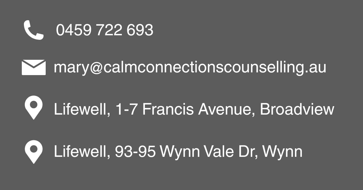 Sometimes we face struggles, challenges and obstacles in life where we need help to re-connect with ourselves and our relationships. In my private practice based at both Broadview and Wynn vale, I work with a diverse range of clients, including young people, adults, couples, parents and families.